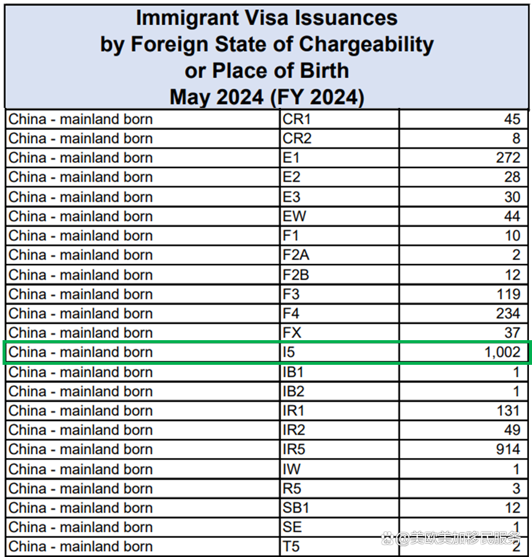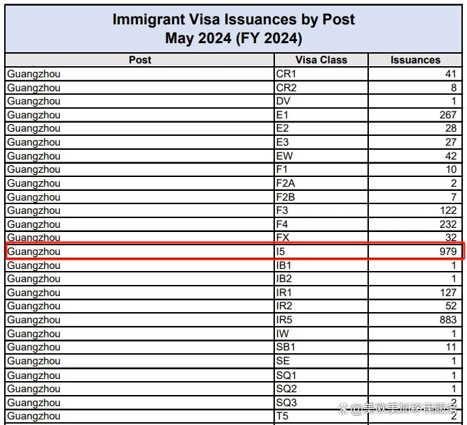 最新!美国国务院发布了2024年5月份的移民签证发放数据。